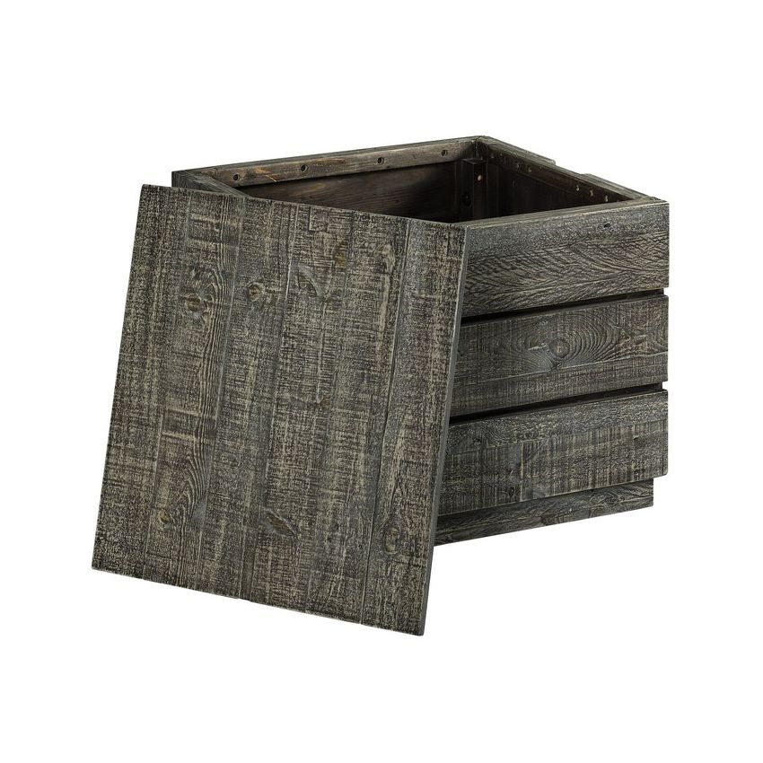 Storage cube with a removable top for storage and casters for movement makes this the perfect item for any room in the home. Features beefy solid reclaimed wood planks, a design feature that evokes strength and durability.