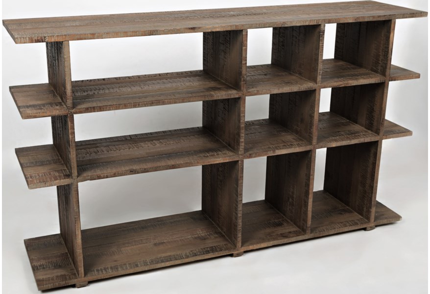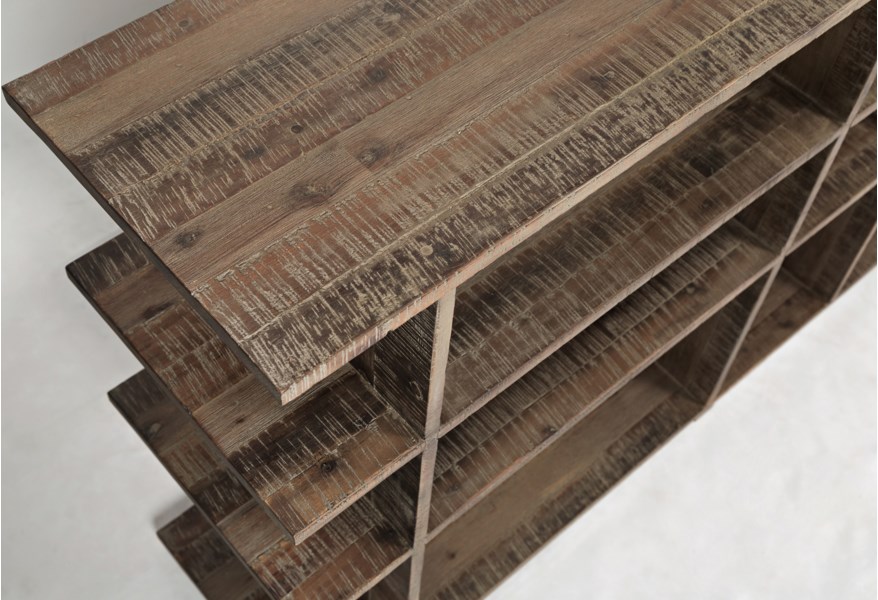 With a unique design and equally unique surface treatment, this occasional group is at home in coastal and urban décor. A flared drum construction on both the cocktail and end tables compliments the perfectly proportioned bookshelf of this solid Acacia collection.