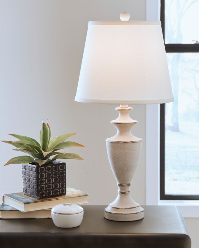 This stylish table lamp set offers a clean, classic look and feel with appealing illumination. Each lamp’s metal base features an antiqued gray finish that complements any space. Fabric shades are a lovely final touch.