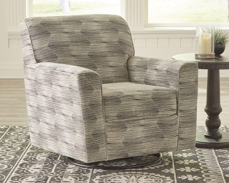 Whether you’re designing a cool and contemporary space or creating a warm and cozy modern farmhouse vibe, you can’t deny: this swivel glider accent chair is a turn for the better. Daring to be different, this designer swivel chair wows with a fashion-forward abstract upholstery for modern sophistication. With a 360-degree swivel and gentle rocking motion, it beautifully goes with the flow.