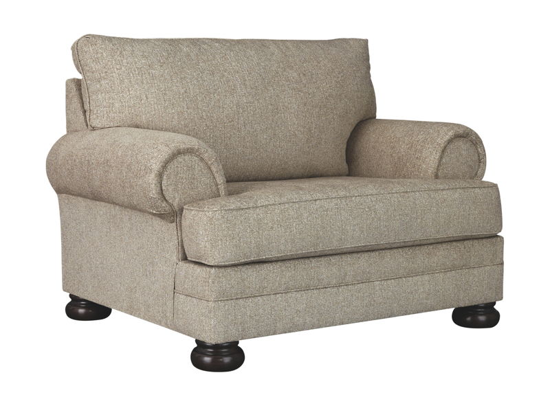 This sumptuously styled oversized chair proves that a richly traditional look doesn’t have to break the bank. Flared effect gives the classic roll arms a relaxed feel, while the choice of a plush chenille upholstery in oatmeal is earthy elegance at its best. Distinctively turned bun feet in a dark finish add to the chair’s substantial presence.