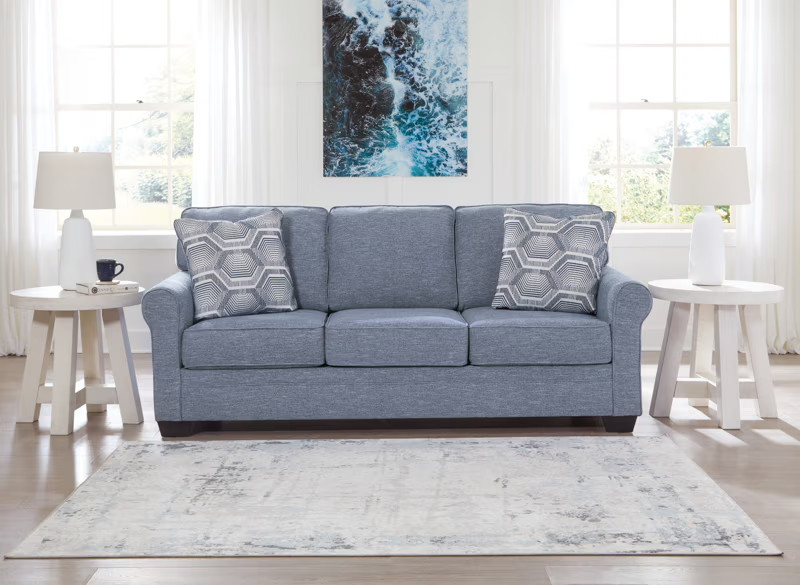 This sofa is defined by comfort, convenience and classic style. Soft to the touch and stain-resistant, the family-friendly Next-Gen Nuvella™ fabric is easy to maintain. And you’ll love the universal appeal of its denim-inspired hue. With roll arms adding a dash of traditional flair, the sofa is a simply chic approach to everyday relaxation.