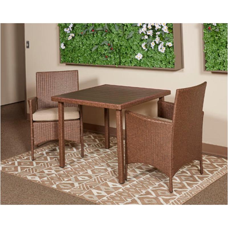 Hand woven resin wicker on a rust free aluminum frame. Seat pads are made with Nuvella high performance fabric. 3-piece set in one carton includes 2 dining chairs and a 36″ square aluminum slat-top table.